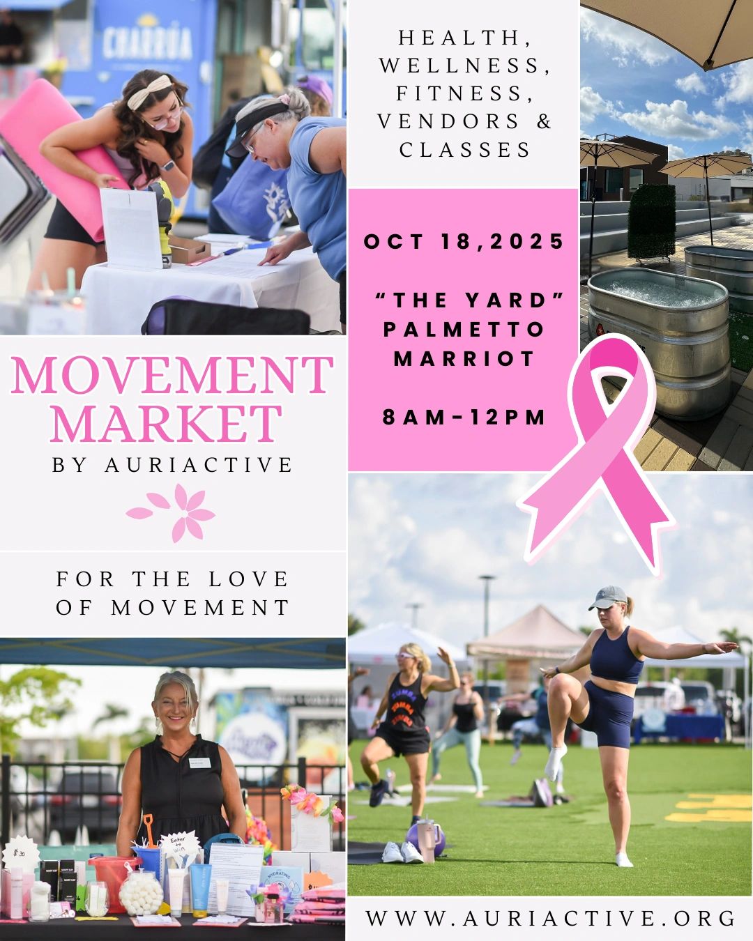 Join us for a feel-good morning of movement, wellness, and community! Hosted by Auriactive, Movement Market is a vibrant outdoor event featuring local health and wellness vendors, fitness classes, healthy eats, music, and more — all in one uplifting space.